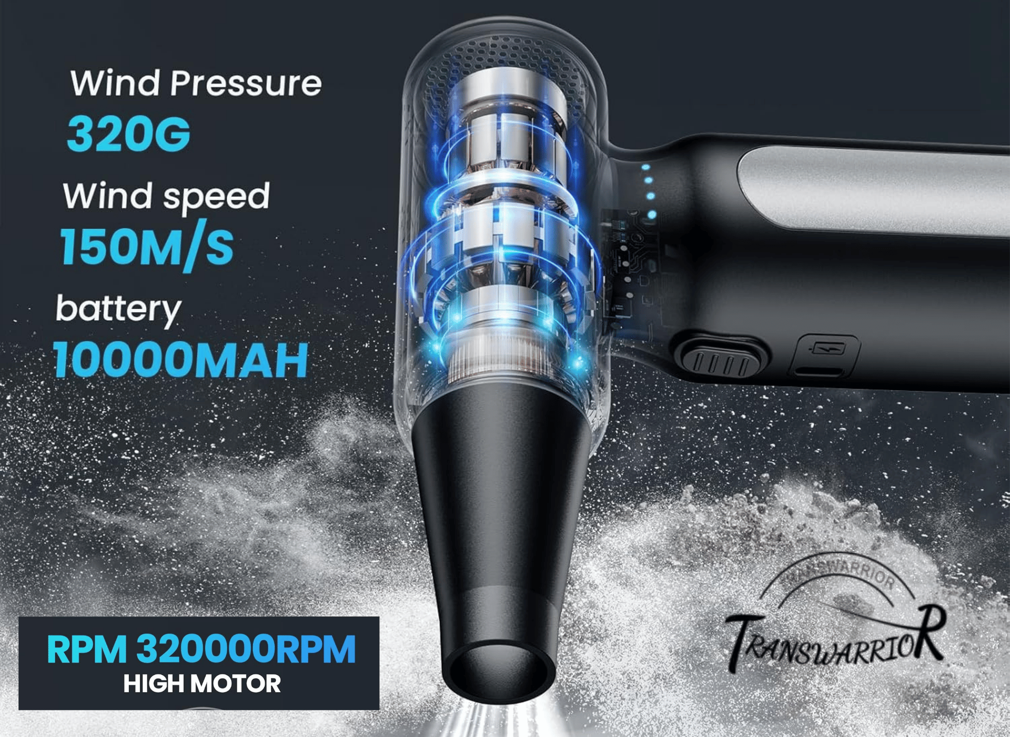 Choose a model with long-lasting battery performance to avoid frequent recharging, especially when cleaning inside your pc case. The TRANSWARRIOR, for instance, includes a 10,000mAh battery, offering extended usability.