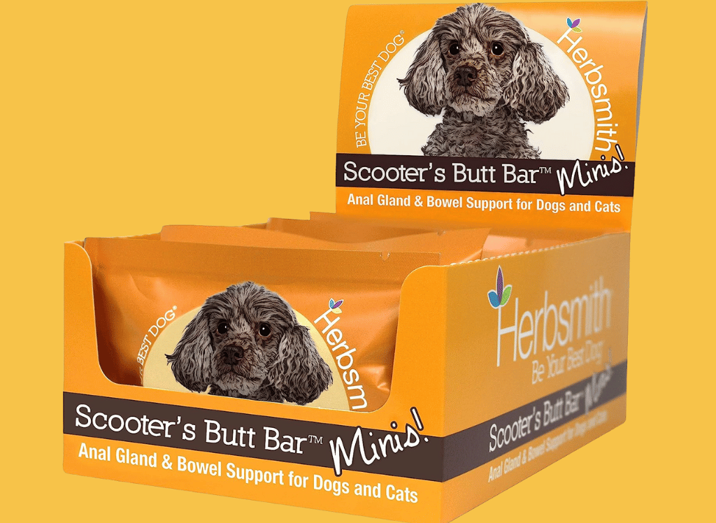 Dr. Chris Bessent developed Scooter's Butt Bars with psyllium husk, pumpkin, and lentils to help dogs' overall bowel and anal gland health. The natural sources of fiber in these bars are beneficial for dogs experiencing stool issues or irregular digestion as they work to relieve diarrhea, firm up stools, and balance water in the colon.