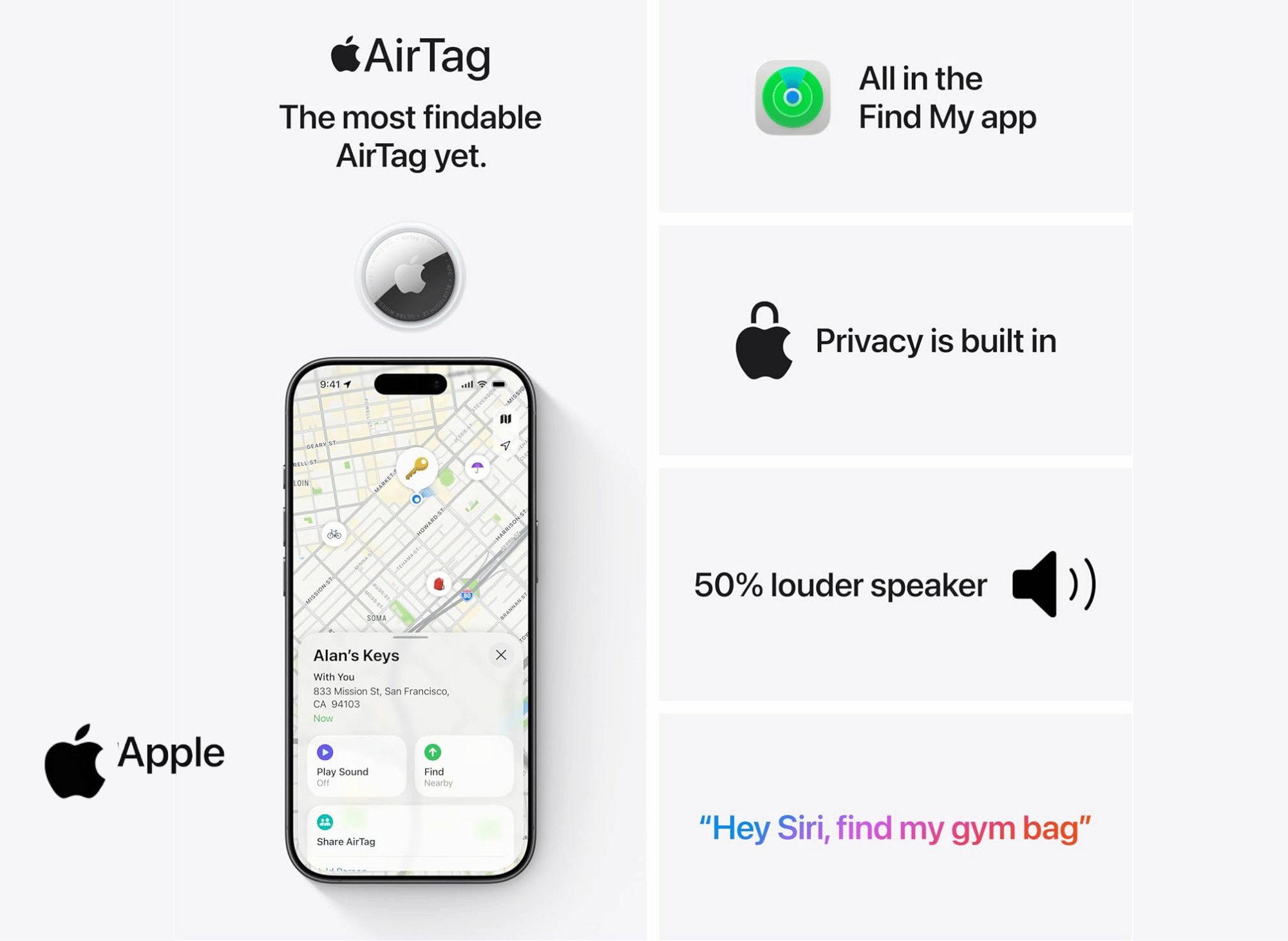 Apple also introduced a new, distinctive chime. If you misplace something nearby, you can simply open the Find My app and play a sound to locate it. You can even say, "Hey Siri, find my wallet," and follow the loud audio alert to your misplaced stuff. A louder speaker cuts through ambient noise, making it remarkably easier to find a tag tucked away in a busy household or a noisy office.