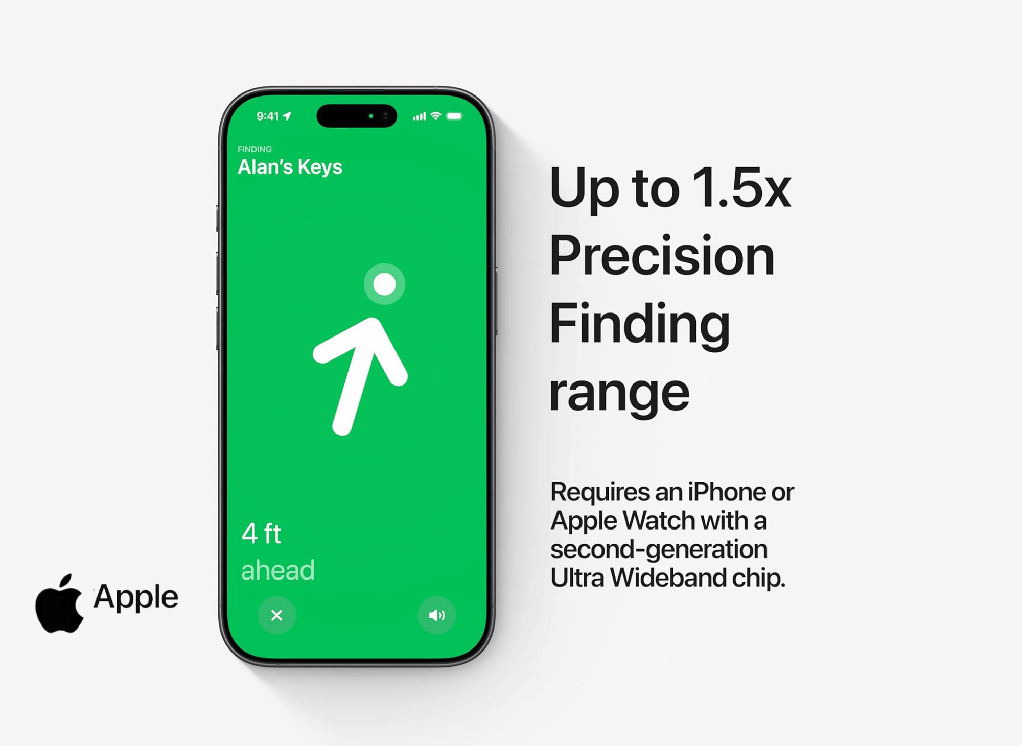 The precision finding range is up to 1.5X further, reducing the time spent wandering around looking for a signal. The expanded Apple Watch integration and upgraded ultra-wideband technology make the tracking experience more robust and user-friendly.