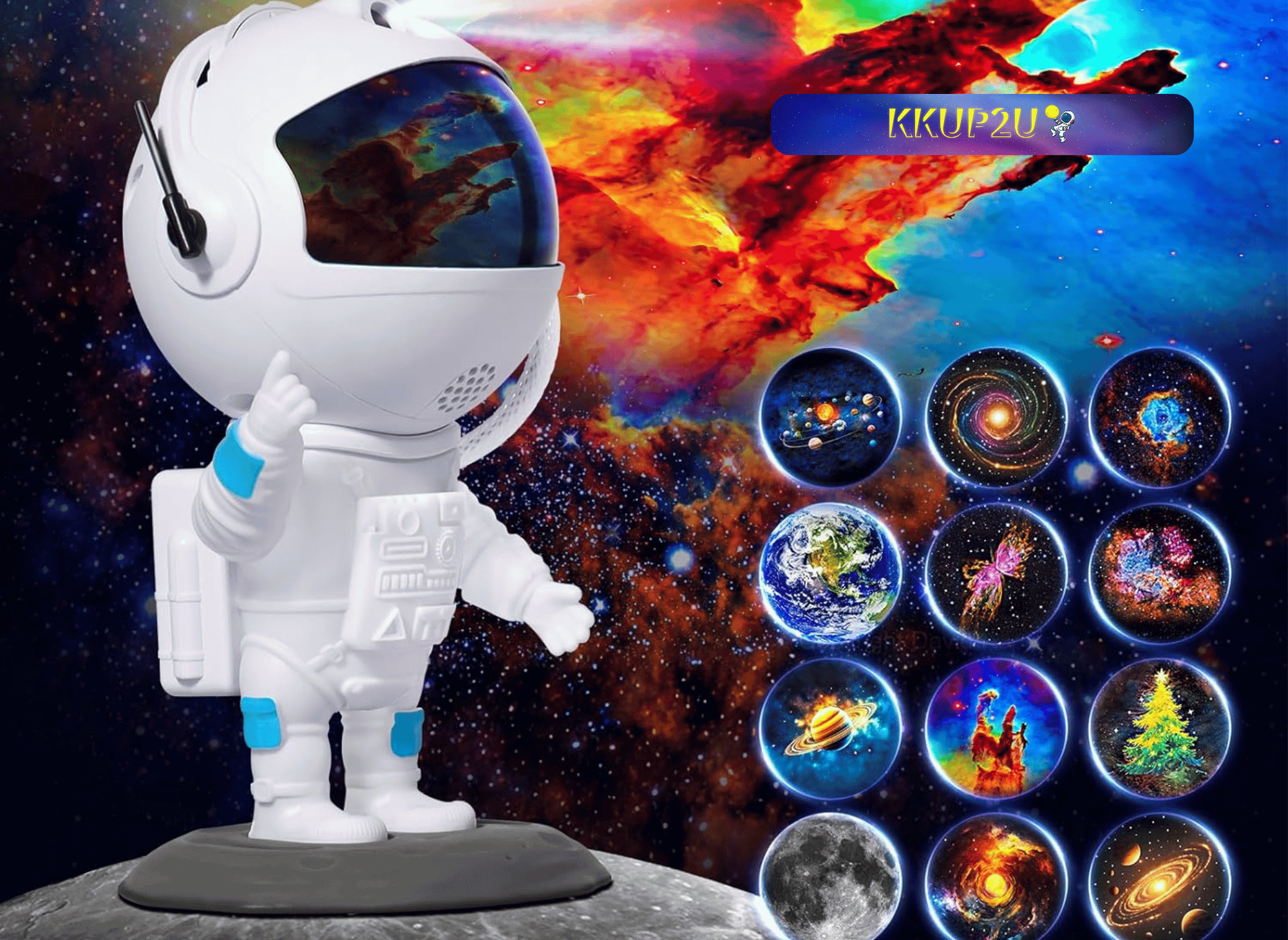 An astronaut galaxy projector is a compact, decorative light projector designed to look like a tiny astronaut. This charming device casts a mesmerizing display of stars, nebulae, and galaxies onto your walls and ceiling. It combines LED and laser technology to create a dynamic and colorful light show that mimics the night sky. The projector creates vivid images of stars and nebulae, enhancing both the visual quality and educational value of the experience.