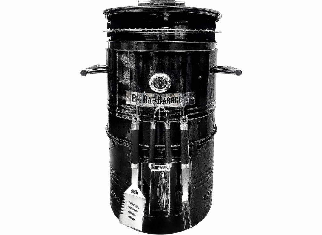 The Big Bad Barrel Pit Drum Smoker is a multi-functional smoker that is perfect for any occasion. It can be used as a table, fire pit, BBQ pit, and more.