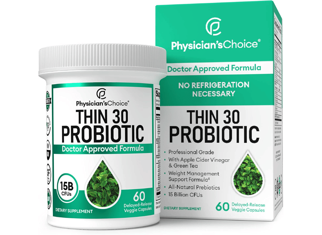 Physician's CHOICE probiotics is a weight management aid that supports you in your journey to a healthier you. The Thin-30 probiotic for women and men is designed to help with weight management and contains Probiotics & organic prebiotics with natural green tea extract + capsimax. The weight management supplement has been formulated to the highest standards!