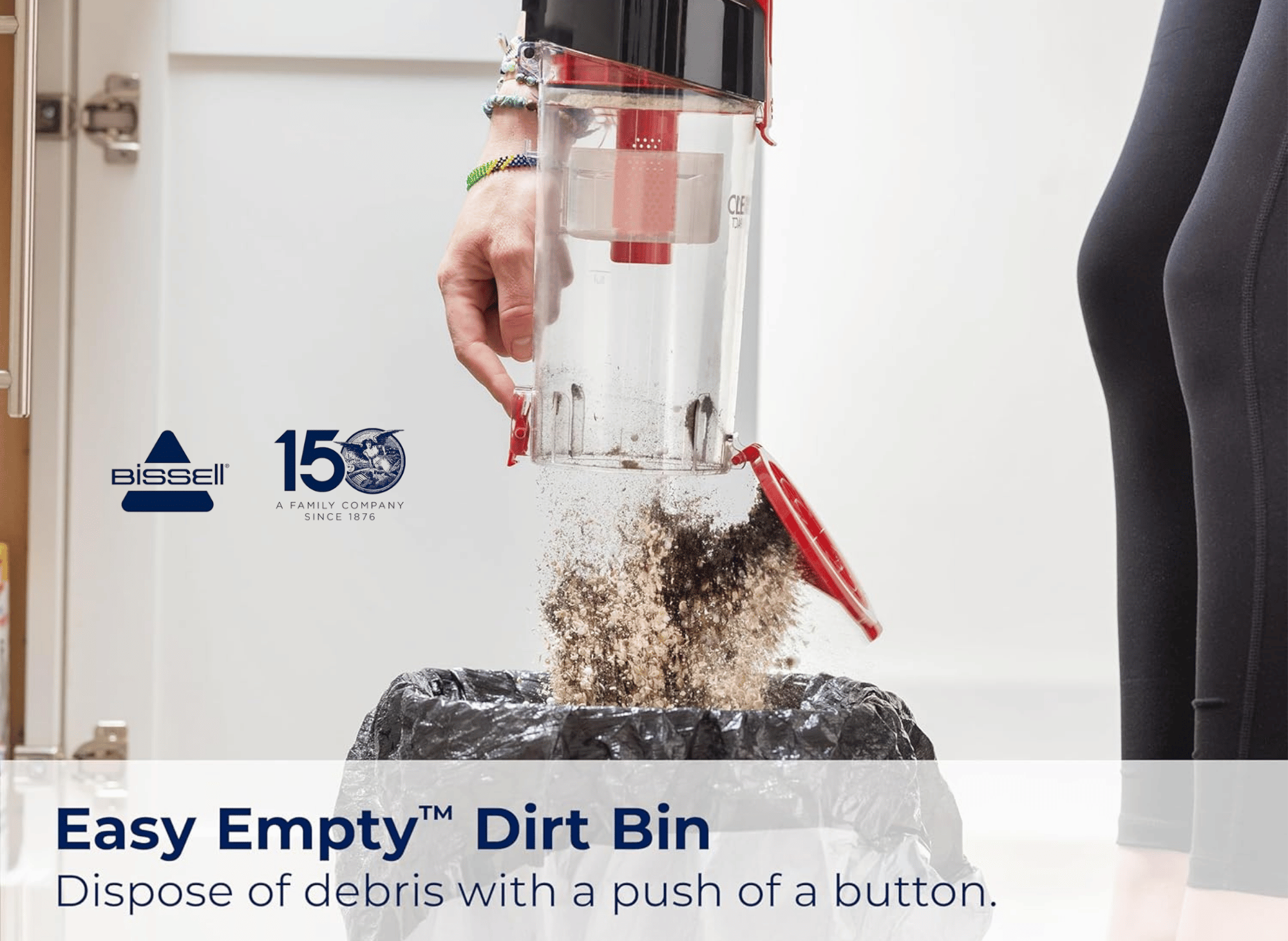 Nobody enjoys dealing with vacuum bags or messy dirt disposal. The CleanView Compact features a one-touch, easy-empty dirt container that lets you dispose of debris with a single button press. The tank detaches quickly, you hold it over your trash bin, press the release, and you're done.