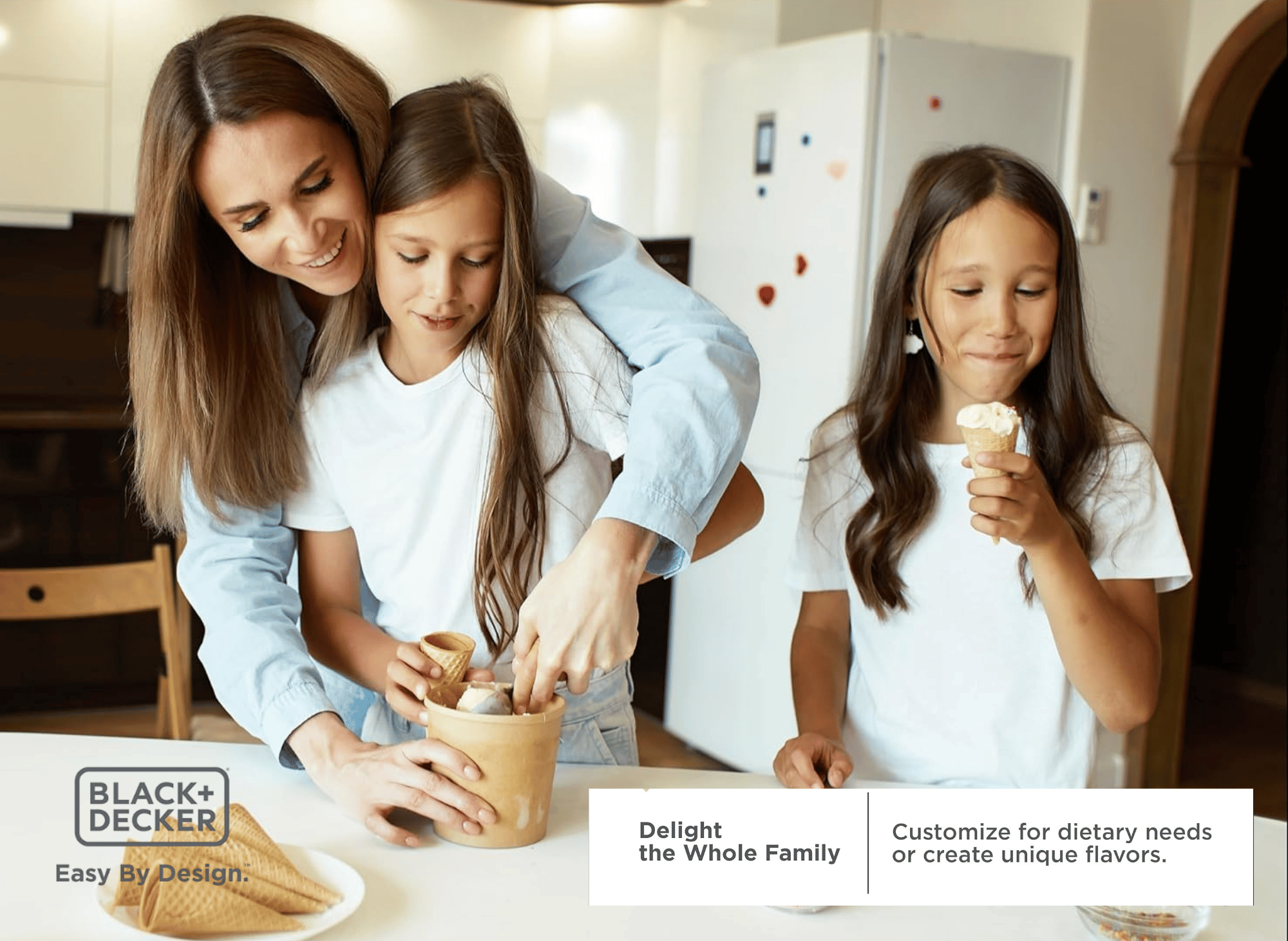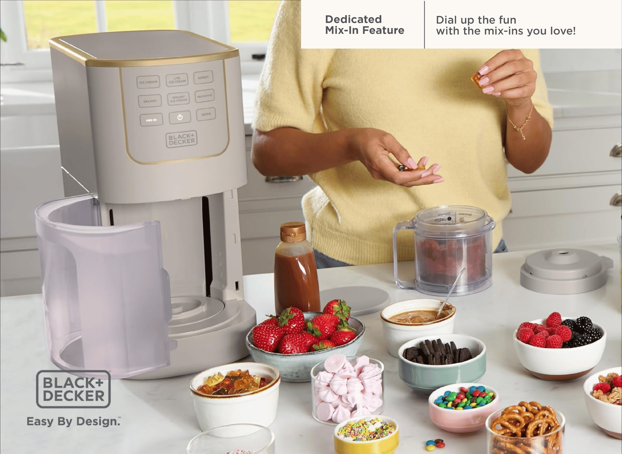 With the BLACK+DECKER Perfect Pint Ice Cream Maker, your kitchen becomes a playground for frozen creativity. For a healthy twist, blend fresh fruit or nuts into your yogurt-based ice cream for a protein-packed, better-for-you dessert. If you’re craving something more decadent, add chocolate chips or your favorite candy for an indulgent treat.