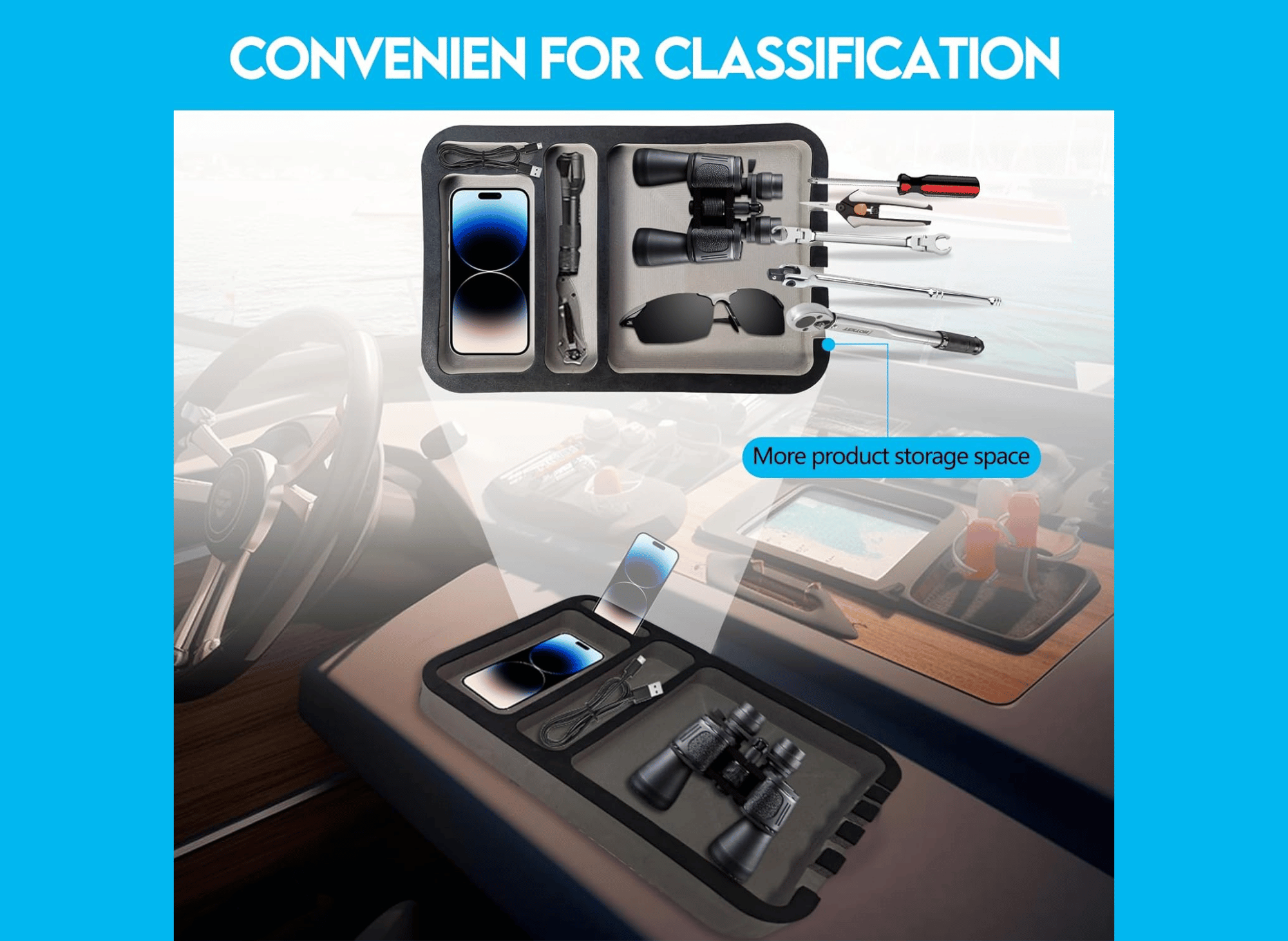 The Rupital Boat Dash Pad is a revolutionary organizer designed to keep your boat console clutter-free and organized.