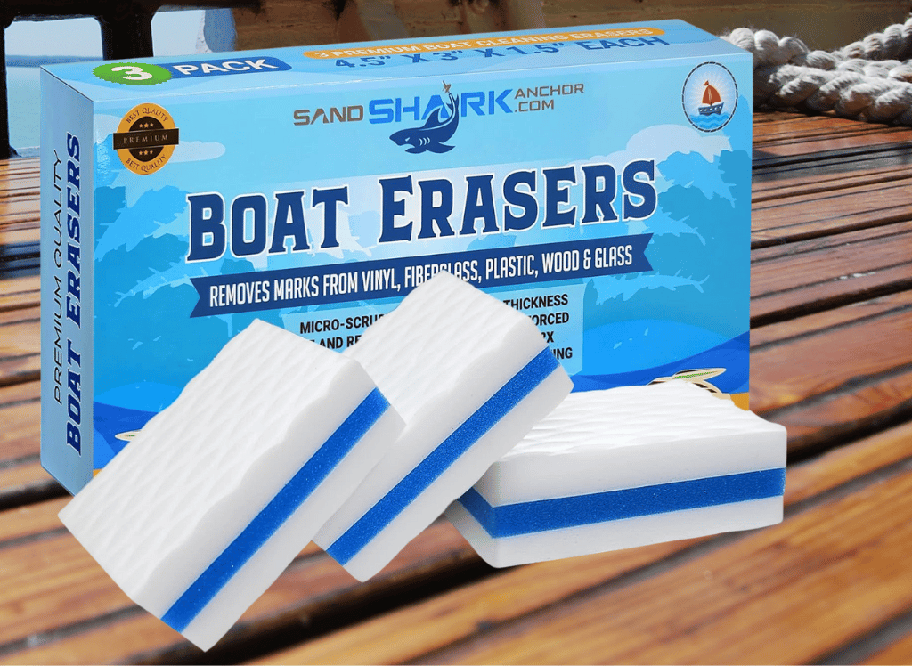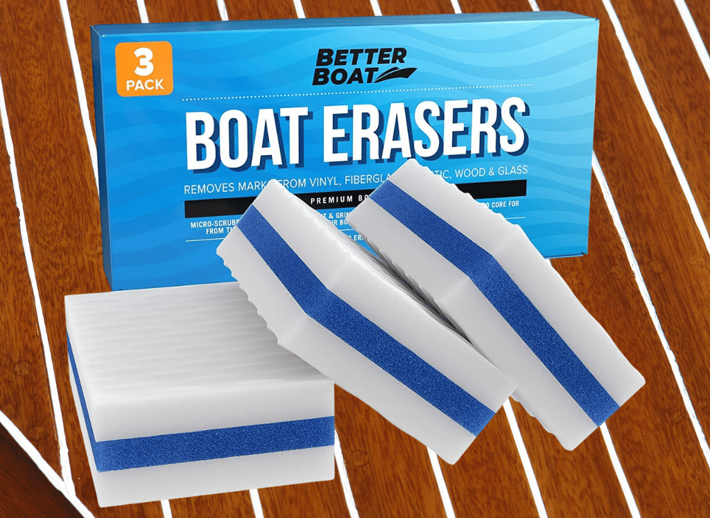 Boat erasers are small melamine foam cleaning blocks that can remove tough dirt, grime, and scuff marks from boats.