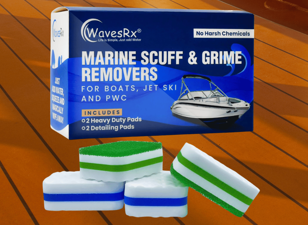 The Wavesrx Marine Grime & Scuff Remover Pads are the ultimate solution to keeping your watercraft looking new. As boating enthusiasts, they understand the importance of maintaining a spotless and polished boat, so they have developed this magic cleaning set.