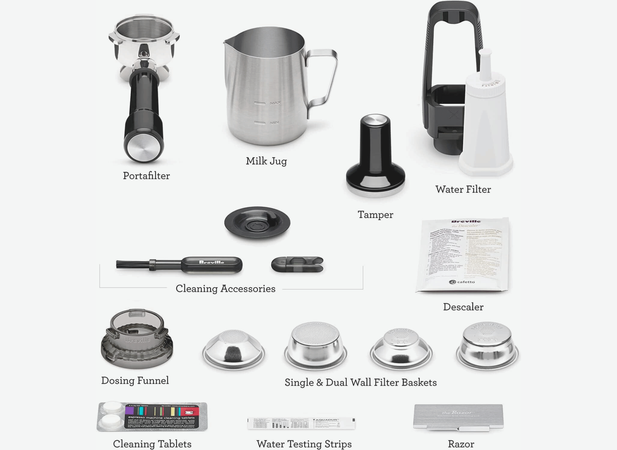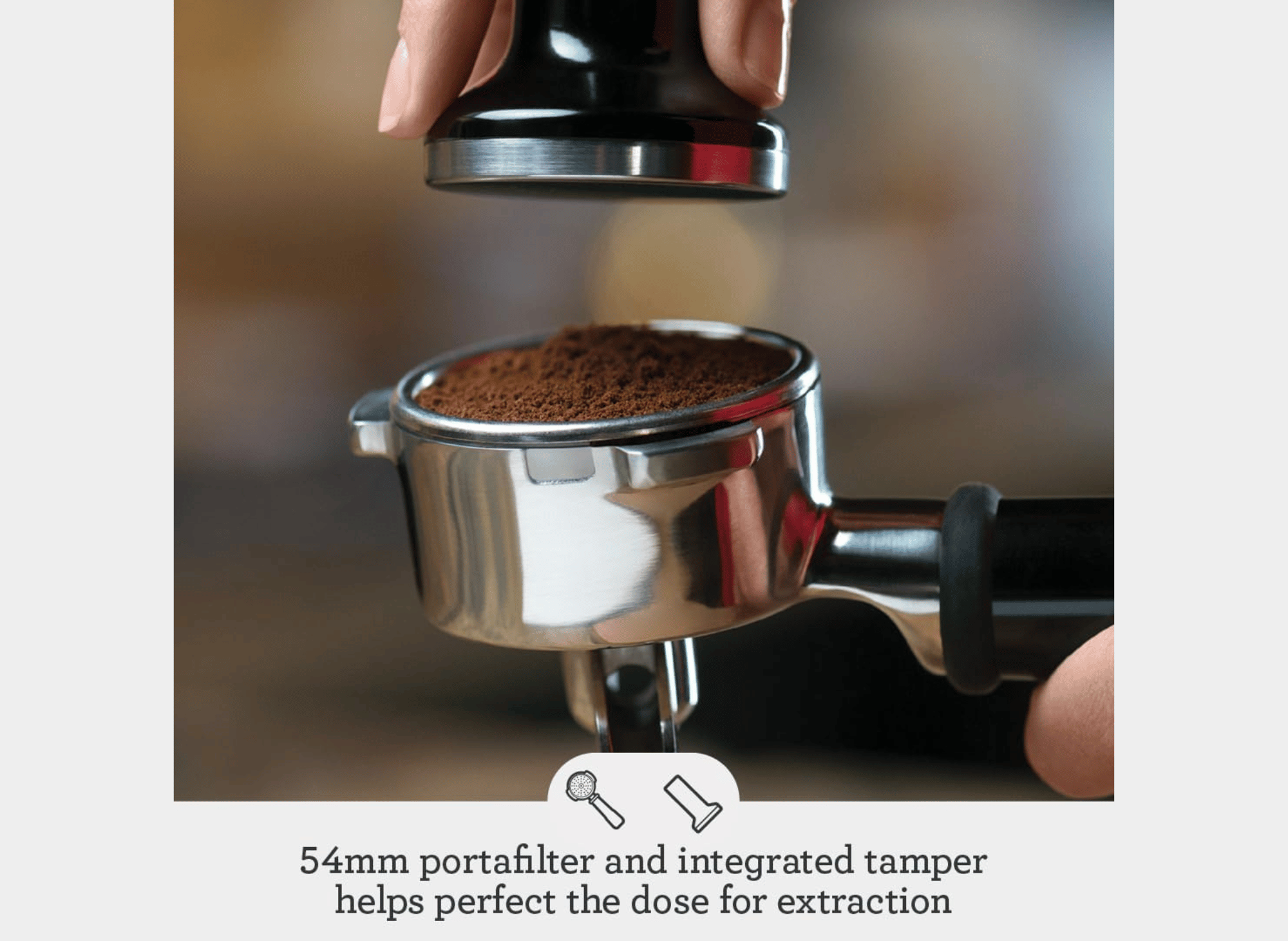 Breville’s attention to detail is evident in the included accessories, such as the coffee scoop and cleaning brush, which are both practical and easy to store, helping make good espresso without any trouble. The knock box is another brilliant addition, making it simple to rid the portafilter of used coffee grounds. The drip tray features a removable plastic insert that can be cleaned in the dishwasher, helping you keep your Breville Barista Express tidy with minimal effort.