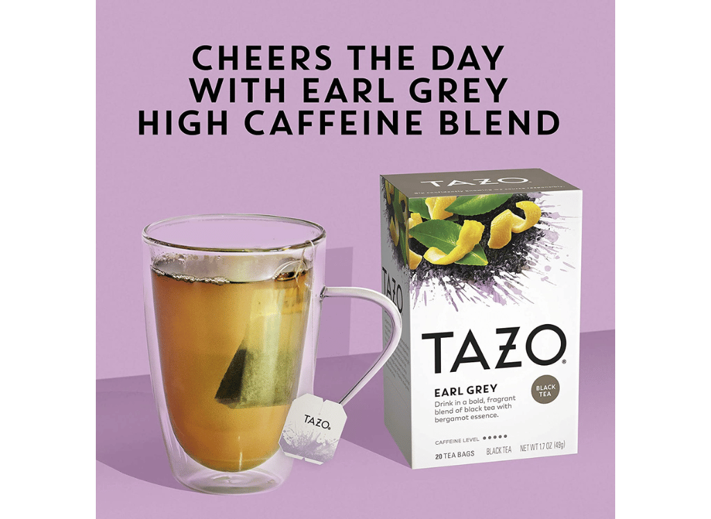 Tazo Earl Grey Tea is perfect for a morning cup of tea or an afternoon pick-me-up. It is highly caffeinated and unsweetened, making it the perfect beverage for those who are looking for a little energy boost.