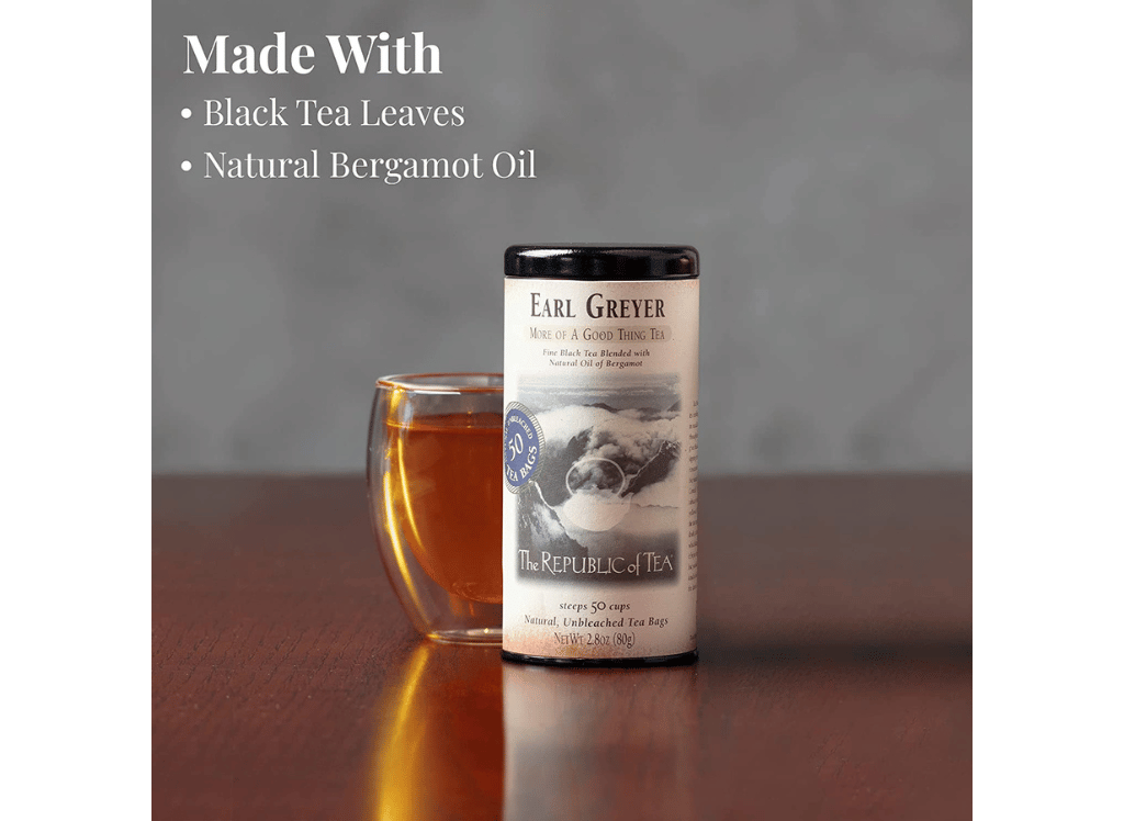 The Republic of Tea's British Earl Greyer is a luxurious blend of black tea and bergamot orange oil.