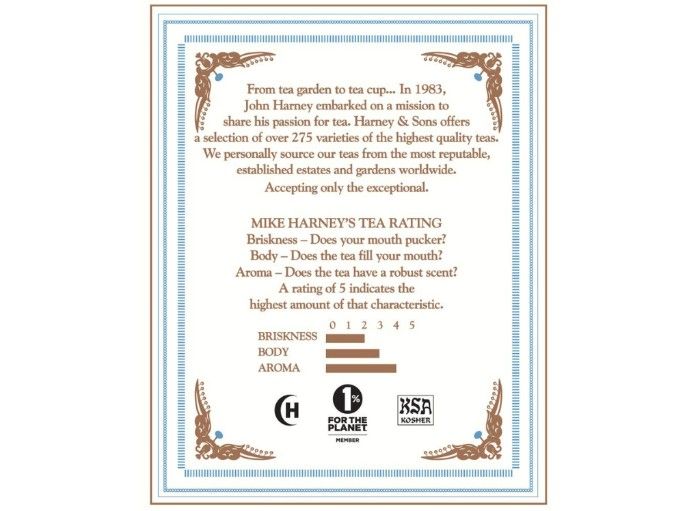 The tea is sourced, blended, and packaged by Harney & Sons, a family-run business that has been perfecting the art of tea blending for over 30 years.