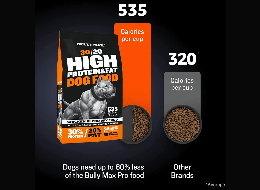 Bully Max dog food is a high-quality, high-protein dog food that is nutritionally complete. It is specifically designed to help maximize muscle, size, and overall health in dogs. Bully Max has never been recalled, thanks to their triple-check system. They are also the only performance dog food that is 5-star rated by Dog Food Advisor.