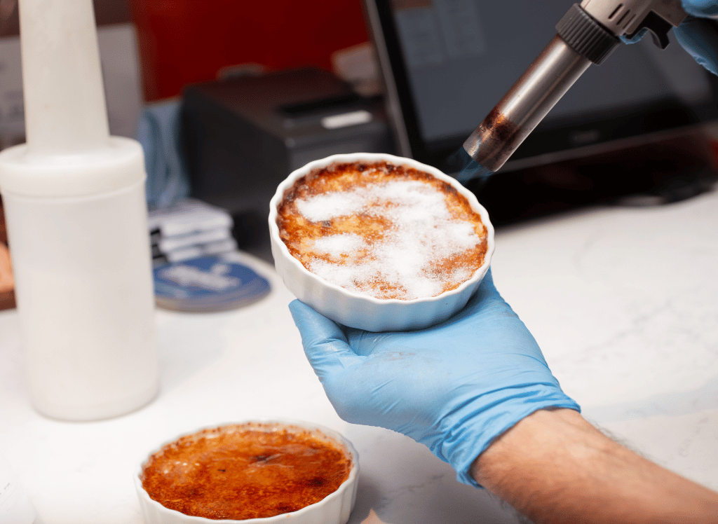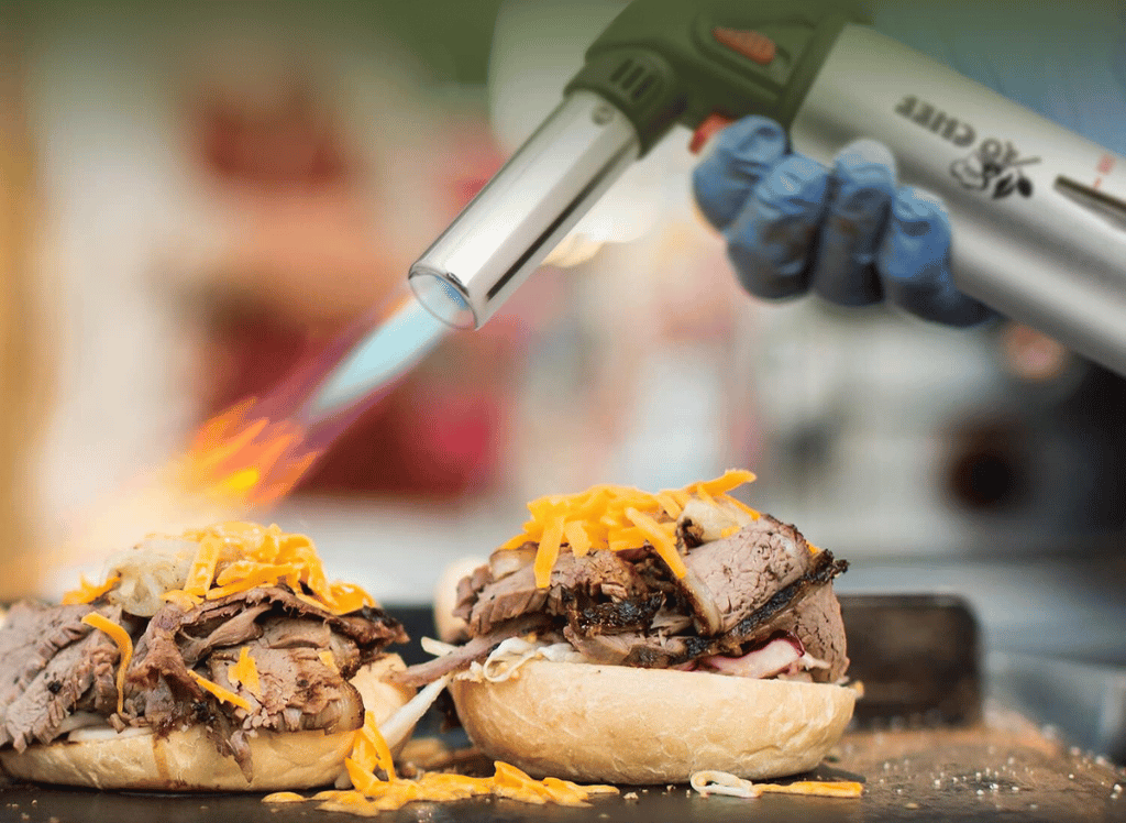 This torch is excellent for browning meringues, melting cheese on top of casseroles, caramelizing fruits or vegetables, and toasting nuts. It is also helpful in blistering the skin of tomatoes, searing a steak, and browning marshmallows.
