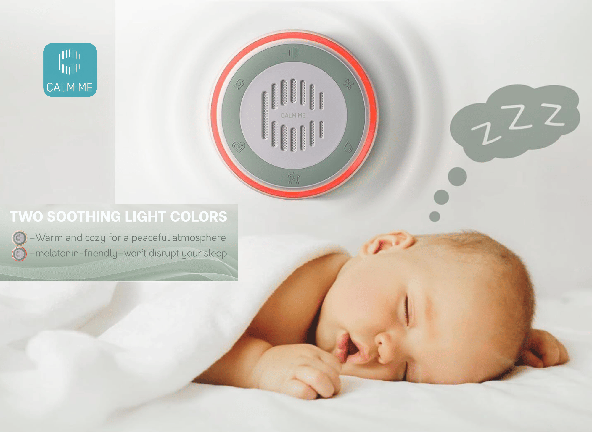 With its sleek, aesthetically pleasing Italian design, the Calm Me machine complements bedroom or nursery decor, creating a serene and stylish environment. Its non-looping audio profiles and versatile functionality make it ideal for sleep hygiene, workspace privacy, and especially for use in a baby's nursery.