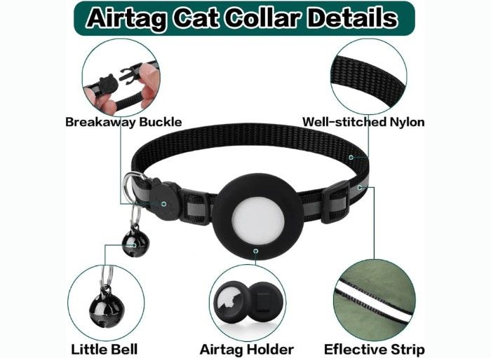Airtag Cat Collar Breakaway, Reflective Kitten Collar with Apple Air Tag Holder