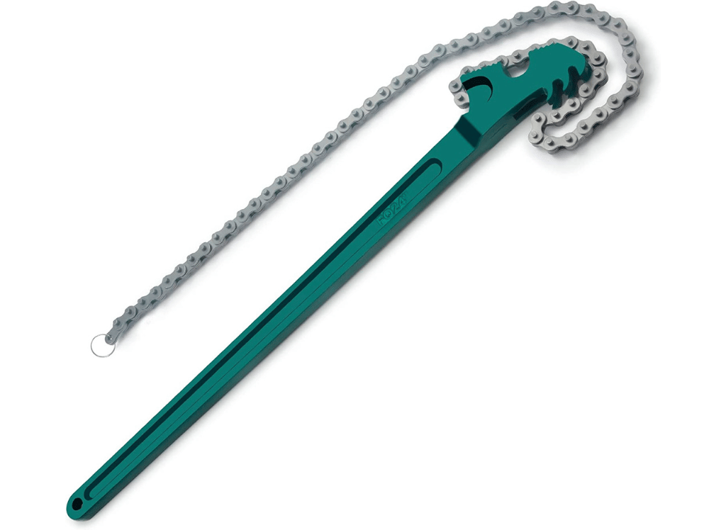 The boeray 15 Inch Heavy-Duty Ratcheting Chain Wrench is an essential tool for any handyman. The handle measures 15 inches, and the chain extends 27.5 inches, allowing you to fit it into tight spaces easily.