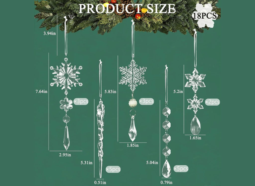 Are you feeling the holiday spirit yet? Bring some winter magic into your home with this amazing 18-piece acrylic Christmas ornaments set! This pack includes a variety of styles, from unique snowflakes to crystal icicles and beaded garlands.