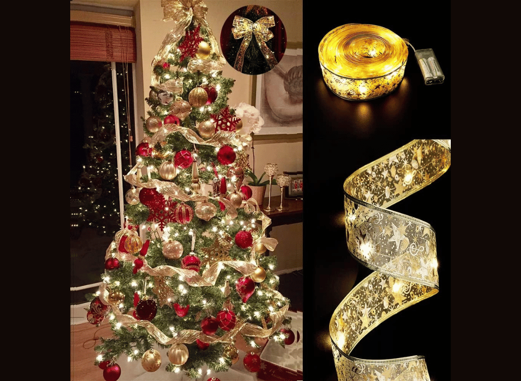 Made with high-quality gauze ribbon and printed with beautiful patterns on both sides, these Christmas ribbon lights are not only durable but also stunning to look at. They will bring you joy and visual enjoyment every time you use them. So why wait? Add some sparkle to your holiday decor with these Safe and Reliable Gold Christmas Ribbon Lights today!