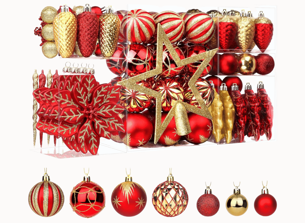 Not only is this ornament set classic and timeless with its traditional Christmas theme, but it's also high-quality and shatter-resistant. You get all the glitz and glamour of expensive ornaments without any of the weight or hazards. Plus, these decorations will make your tree stand out and create a warm and gorgeous Christmas night.