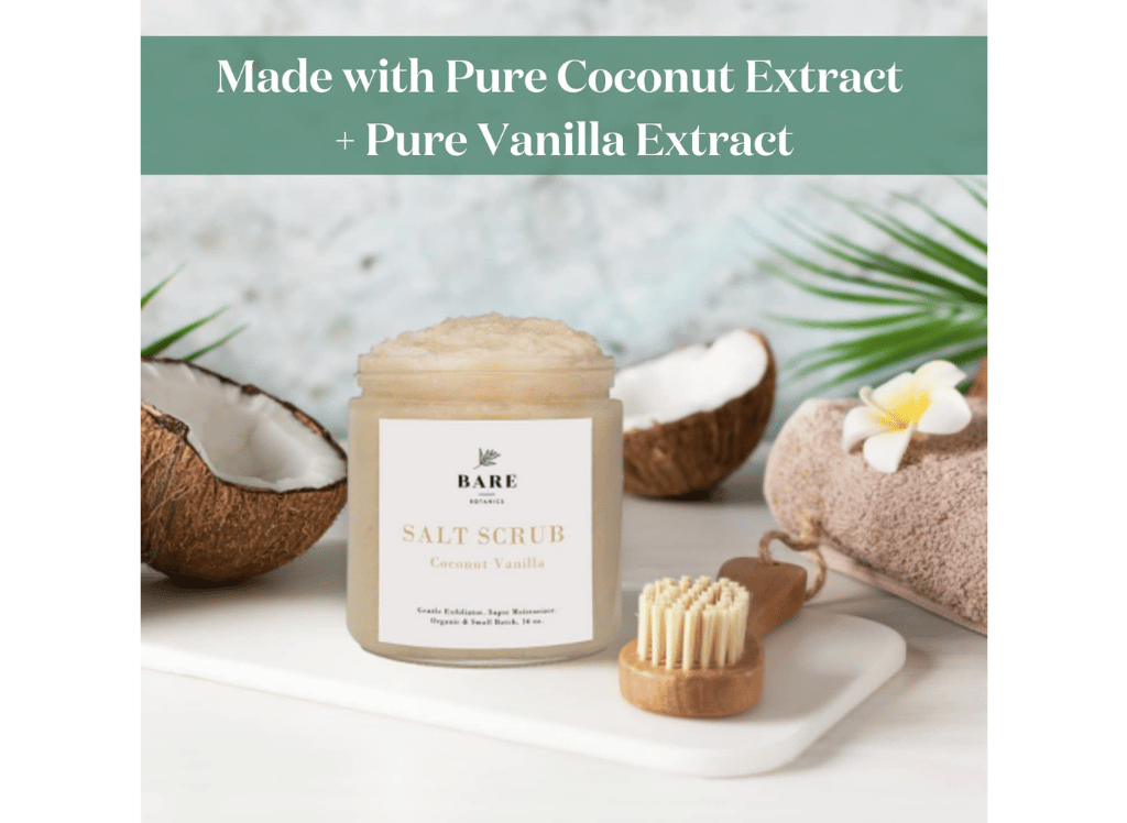 Bare Botanics Exfoliating Scrub! Their ultra-fine sea salt scrub is specially formulated to gently slough away dead skin cells, oils, dirt, and other impurities for glowing, radiant skin.