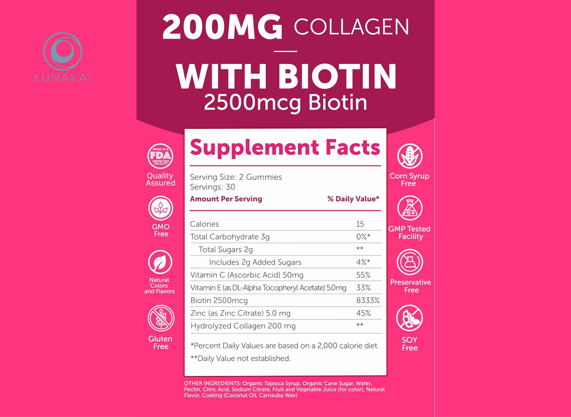 - Non-GMO: Lunakai collagen gummies are made with non-GMO ingredients, ensuring a clean and high-quality supplement.