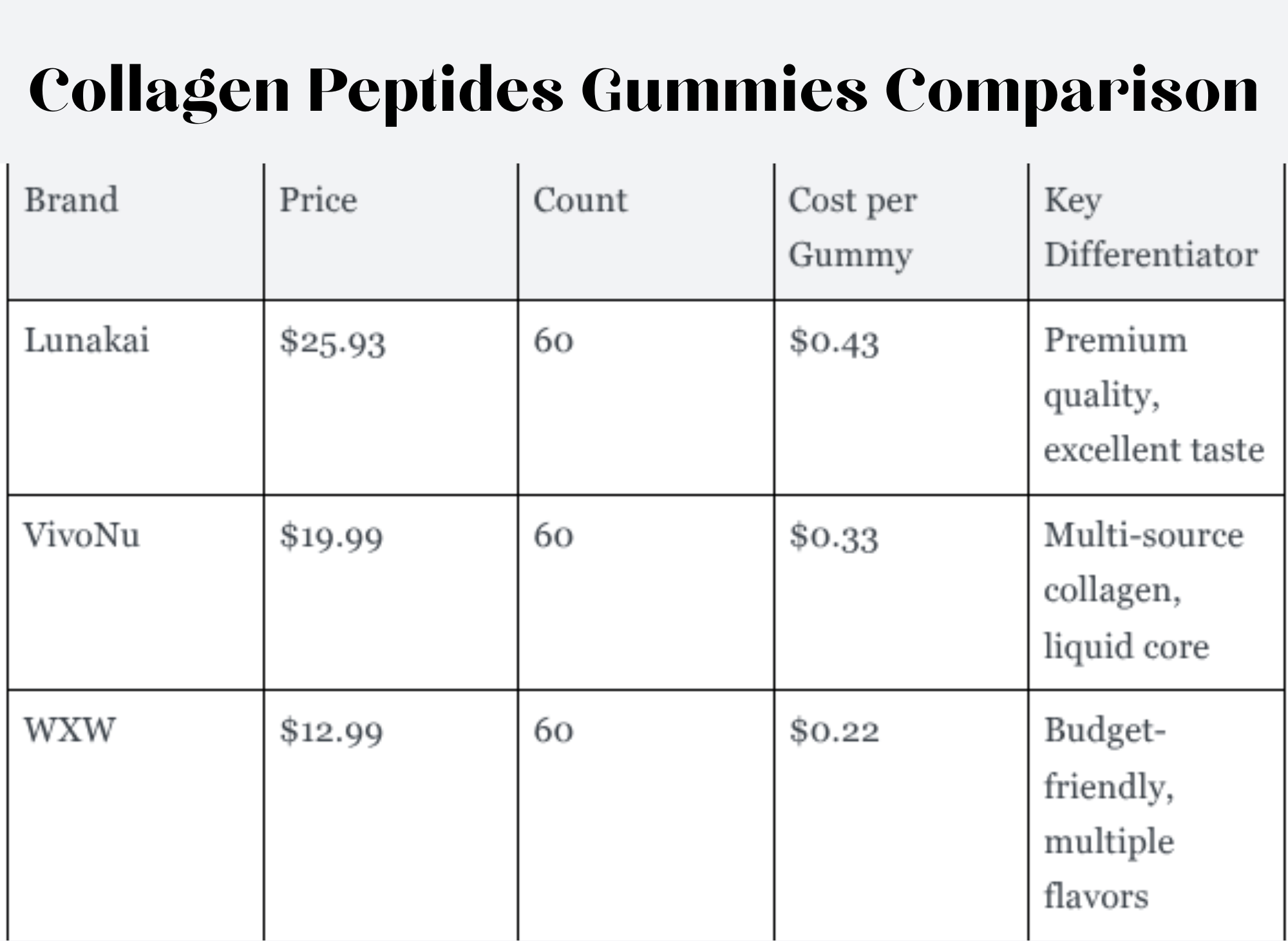 This comprehensive guide examines everything you need to know about collagen peptide gummies, providing a detailed look at popular brands such as Lunakai, VivoNu, and WXW, which can be particularly helpful in making an informed decision.