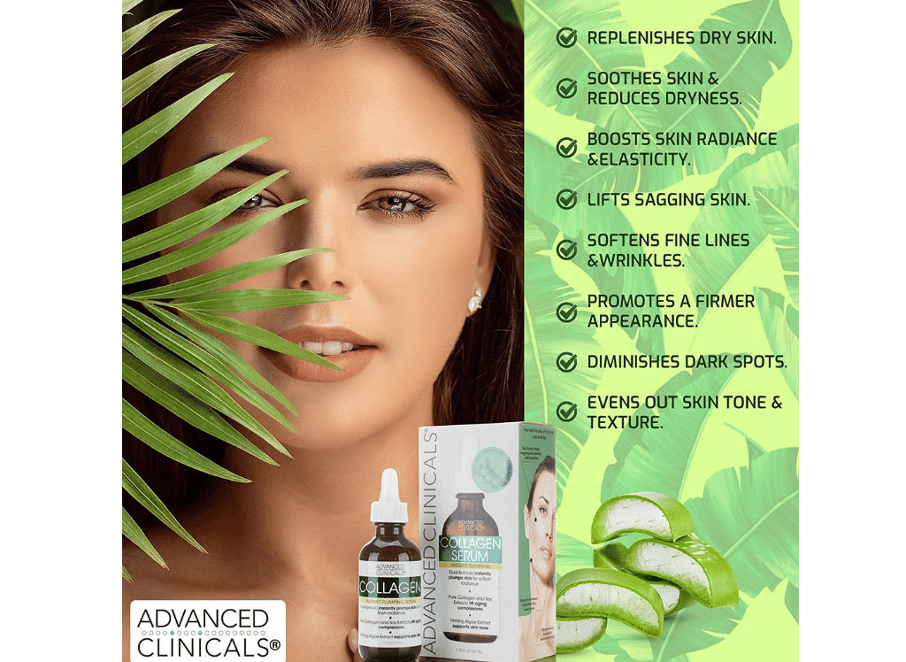 Collagen also assists in firming up your skin while providing an uplifting effect. Stop the clock on time-worn skin and enjoy a more radiant look with Advanced Clinicals' Collagen Instant Plumping Serum!