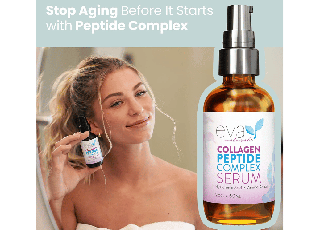 Eva Naturals Peptide Serum is an advanced anti-aging formula designed to help reduce the appearance of wrinkles, improve skin elasticity and tone, and create a youthful glow. This powerful serum contains effective peptides that work to alert your skin when it's time to produce more collagen for firmer, plumper skin.