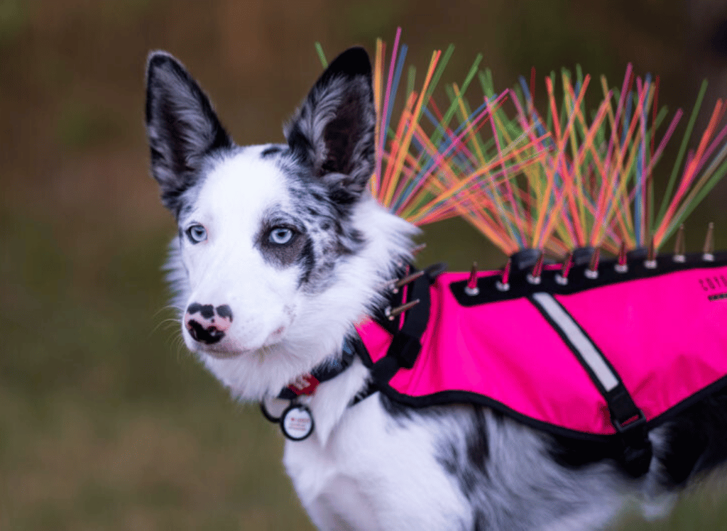 CoyoteVest's CoyoteWhiskers are designed to protect your furry friend against potential predators. These ultra-lightweight bright nylon bristles spikes attach easily and securely onto the Coyotevest or SpikeVest dog harness using their velcro tabs, making them an ideal alternative pet fashion statement.