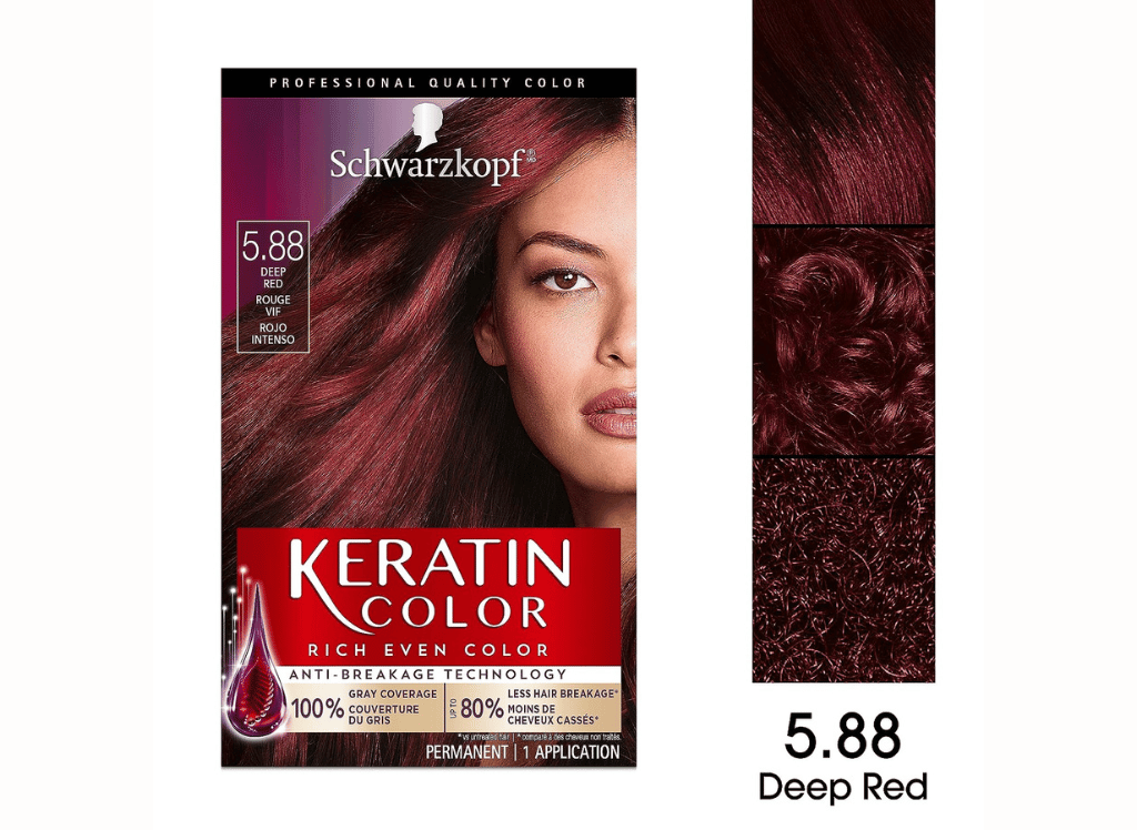 Schwarzkopf dark cherry red hair color is formulated to provide long-lasting, vibrant color with up to 100% gray coverage. Its K-Bond Plex technology repairs the inner structure of your hair while coating its surface for a strong and healthy look. Plus, our Anti-Breakage Technology ensures up to 80% less breakage than untreated hair, so your color will stay in place for much longer! With Schwarzkopf's dark cherry red hair color, you can get salon-quality results without the price tag. Plus, our innovative formula helps protect and nourish your hair while providing beautiful, lasting results.
