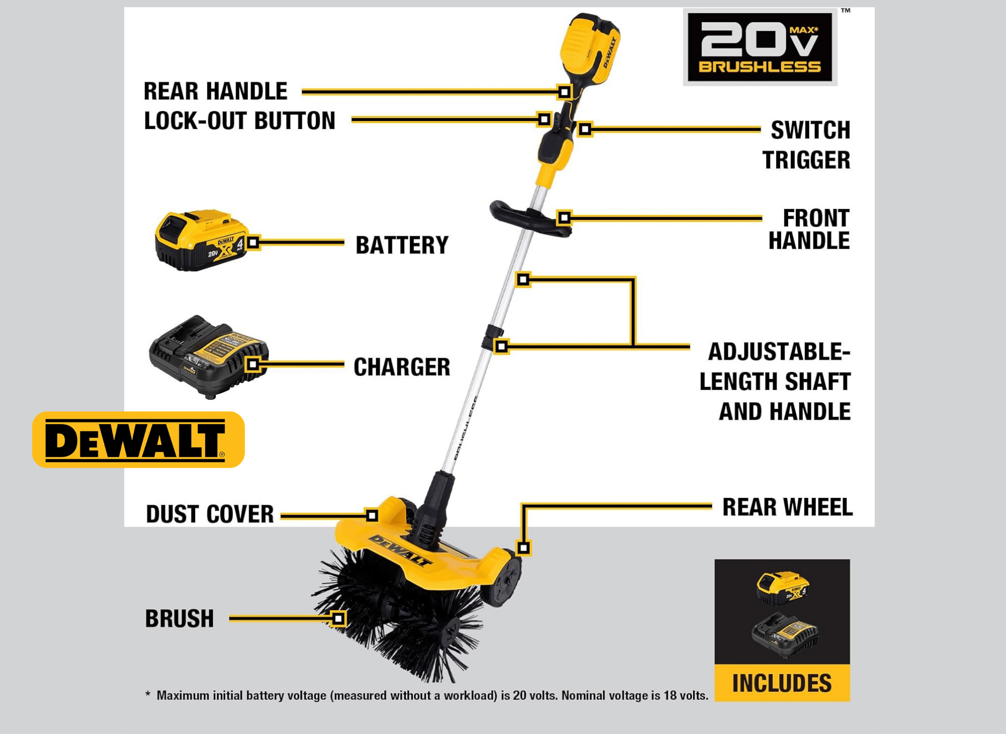 - Cordless Convenience: As a cordless electric-powered sweeper, you are not tethered by wires. It runs on the DEWALT 20V battery system, ensuring compatibility and seamless integration with other DEWALT 20V tools. (Note: Check if the battery and charger are included or sold separately, depending on the specific retailer package you select.