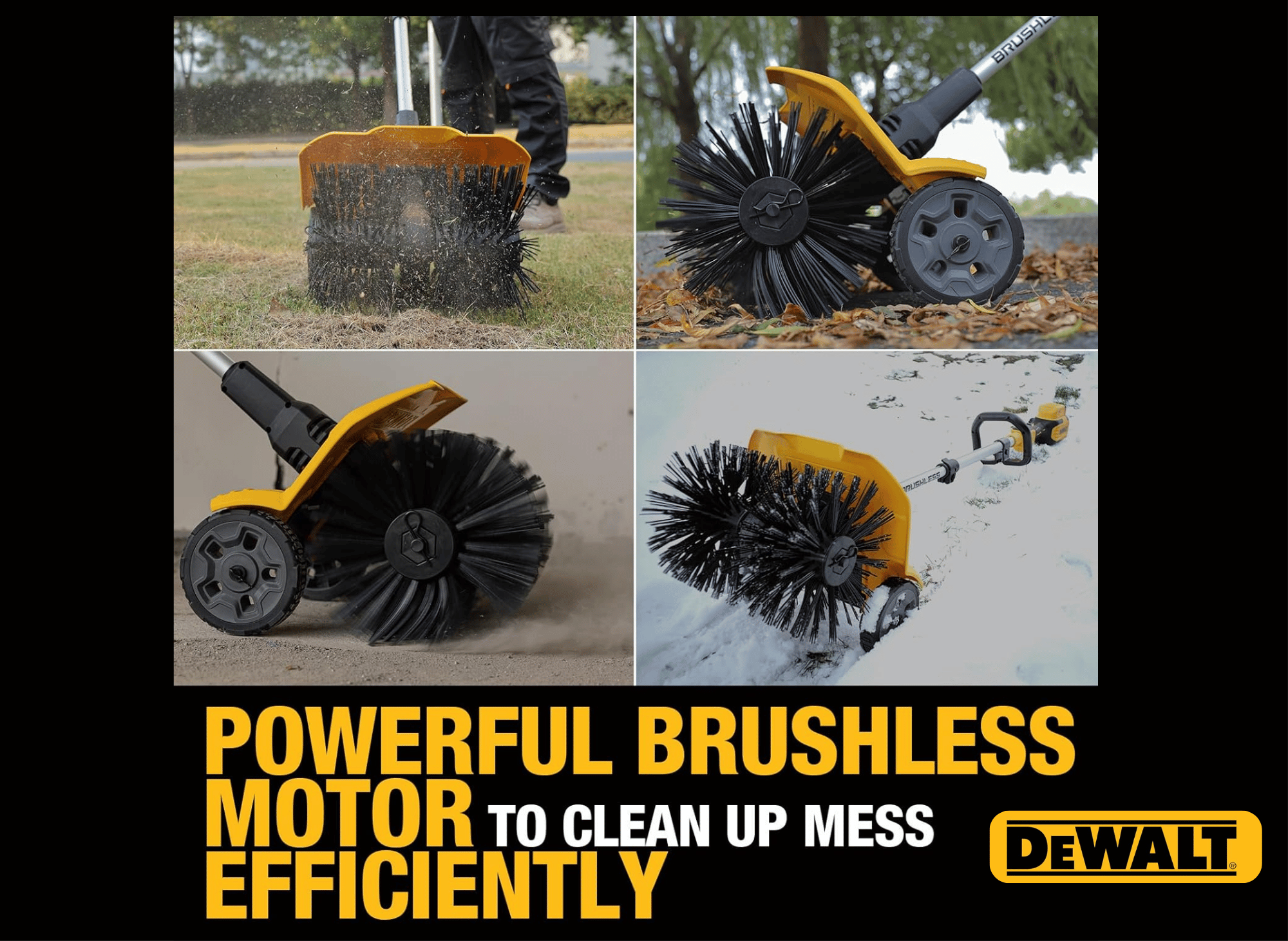 At the heart of this Dewalt electric-powered sweeper is a robust brushless motor that delivers relentless performance and the kind of Dewalt toughness that professionals and homeowners alike have come to trust. The tool is built to withstand frequent use, and its 10-inch-diameter brush with 6.5-inch bristles ensures efficient snow removal and effective clearing of leaves, dirt, and other debris across a variety of surfaces.