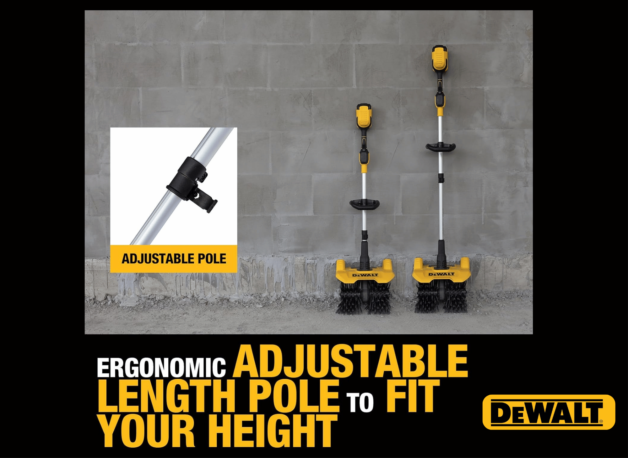 The DEWALT 20V Battery Power Broom Sweeper runs on the trusted DEWALT 20V MAX* battery platform, ensuring compatibility with the 20V battery system for seamless integration and convenience. When choosing your battery and charger, users have options to select different batteries or settings to suit their specific needs and cleaning tasks.