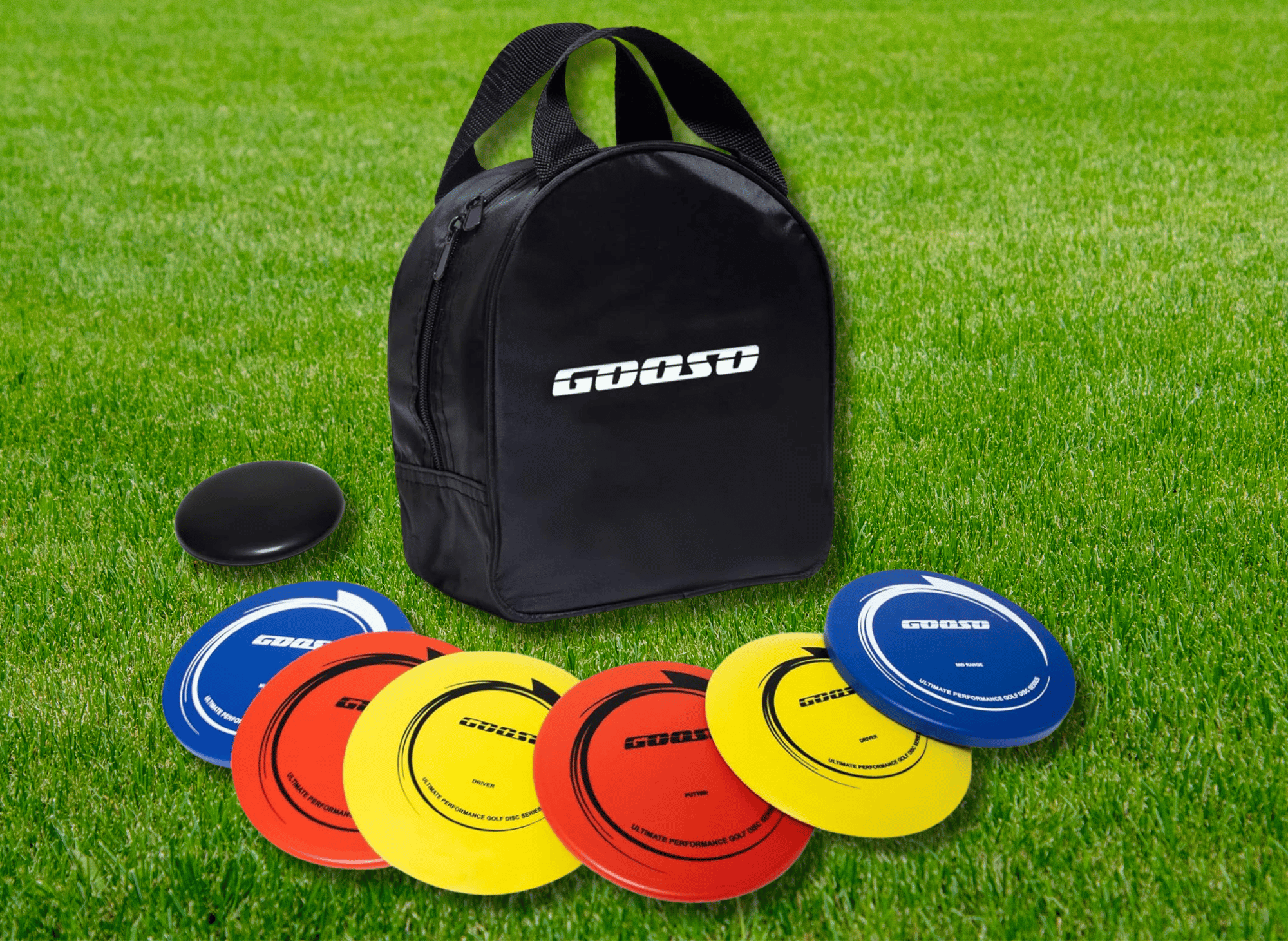 The Gooso Disc Golf Set is a premium collection of discs crafted for both new and experienced players. This comprehensive set boasts six popular disc models, each carefully selected to help you achieve your best performance on the course. Complete with a convenient carrying bag, easy-to-throw weights ranging from 150-180g, and a variety of colors, this set is designed to cater to all levels of play.