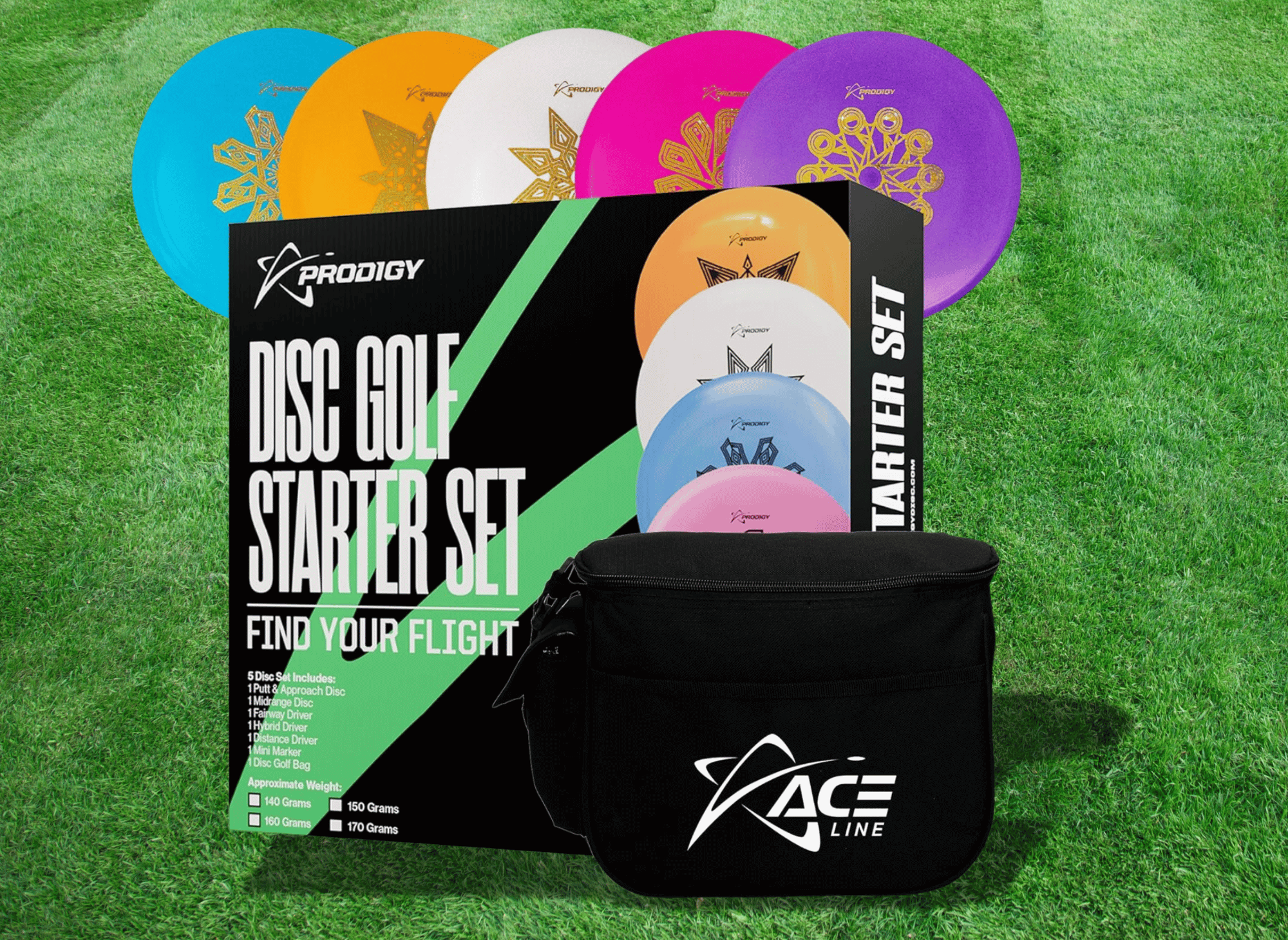 The Prodigy Disc 5 Disc Golf Set is a comprehensive starter kit designed for beginners interested in embarking on their disc golf journey. This set includes everything you need to hit the course, including five discs, a small disc golf bag, and a mini disc for marking your lie.