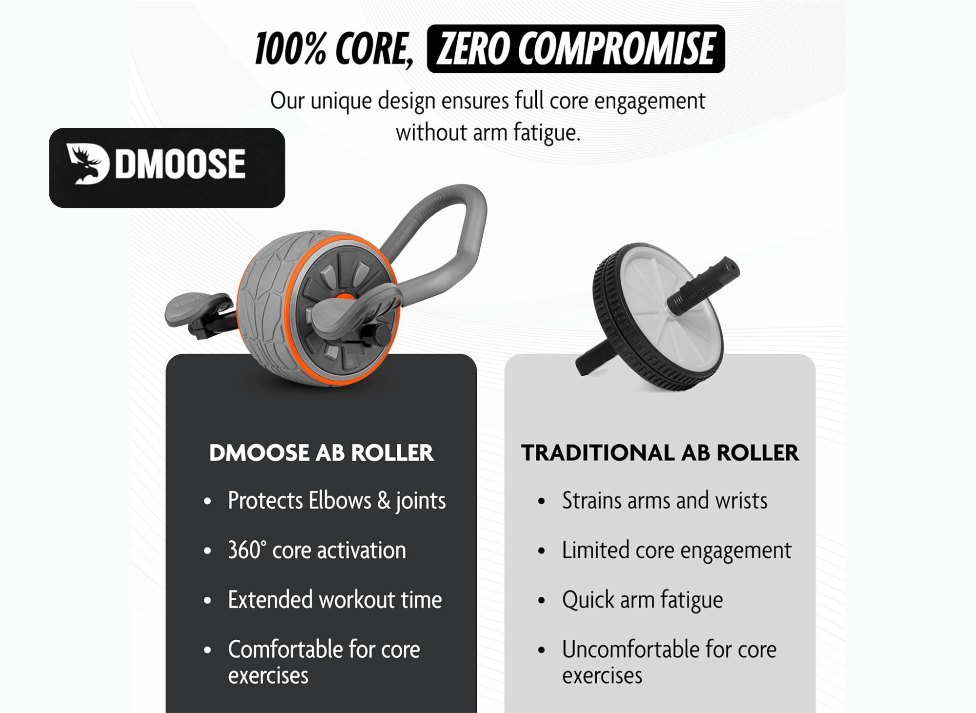 Why wait? Check out the DMoose Ab Roller and challenge yourself with a pre-assembled DMoose Ab Roller to take your core workouts to the next level.