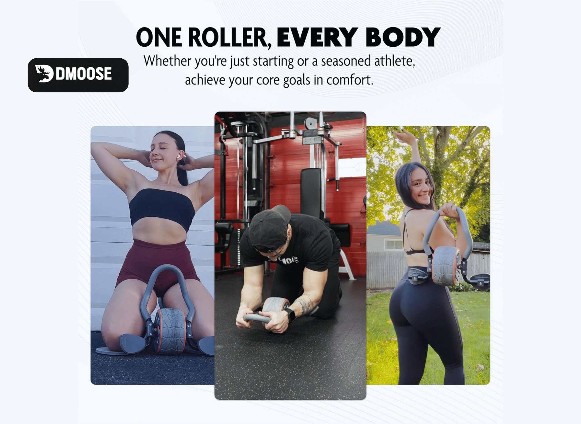 The DMoose Ab Roller is designed for efficiency, ensuring maximum muscle activation and ergonomic comfort, which enhances workout effectiveness and allows you to watch yourself enjoy smooth and controlled movements, reducing the risk of injury.
