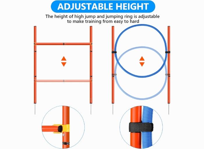 And with its high-quality materials and easy setup, you'll be able to use it for years to come. Whether you're looking to train indoors or are planning a day in the park, this set can easily be packed up and transported wherever your pup needs to be. Give your pup the ultimate workout with the Cheering Pet Agility Set!