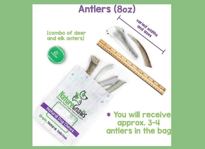 Nature Gnaws Antlers promote dental while providing a delicious and simple chew that is always natural. The mix of split and whole antlers allows aggressive chewers to enjoy the product for longer periods.