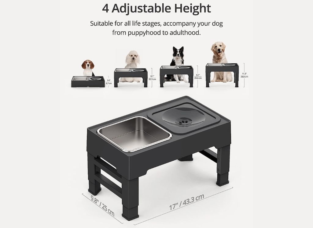 - Adjustable Height: This elevated dog bowl stand offers four different heights, accommodating the growth of your pup from a young puppy to a mature adult. It reduces strain on their joints and promotes healthy digestion.