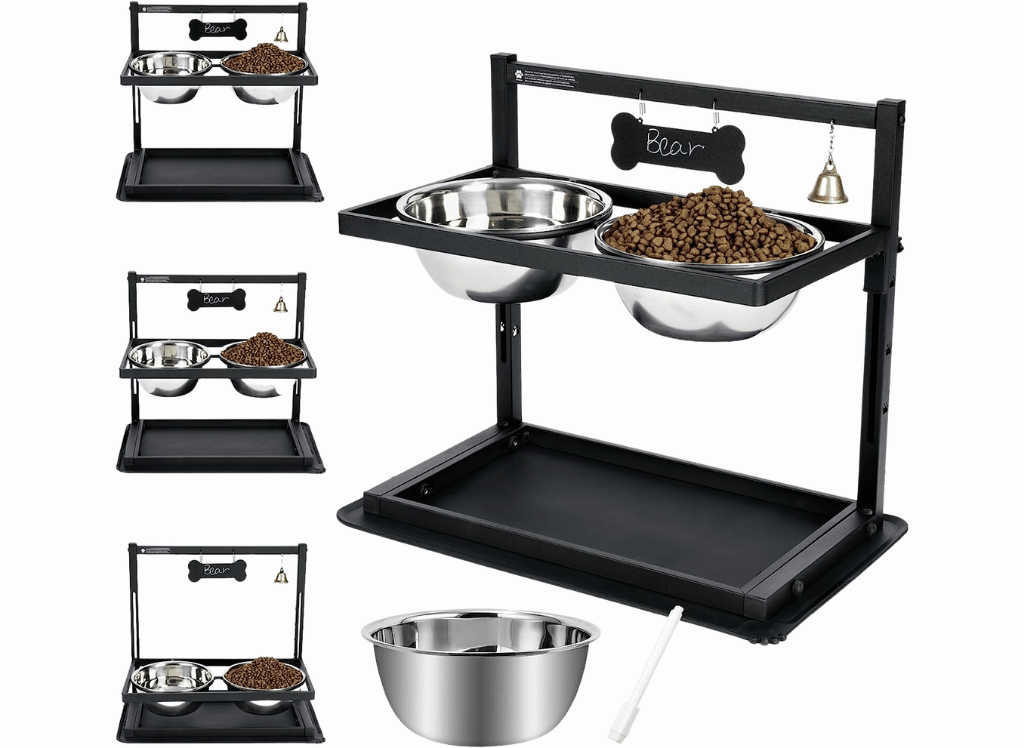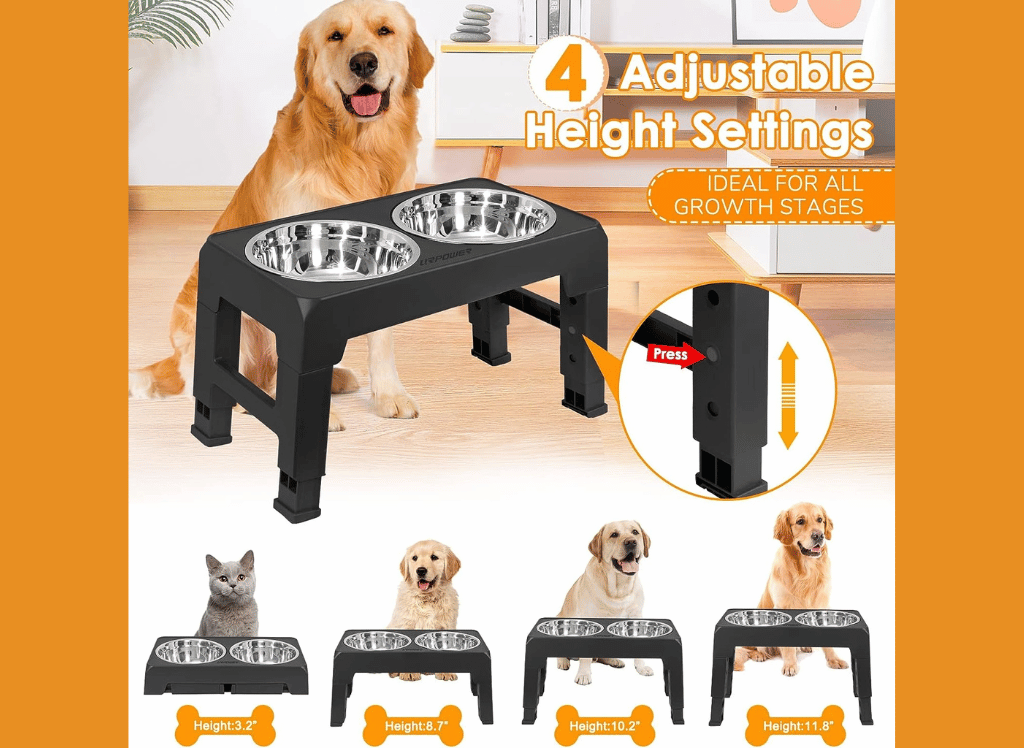 - Adjustable heights: The Petace Elevated Dog Bowl Stand accommodates four different levels of height, making it versatile for both smaller breeds and cats, and larger breed dogs.
