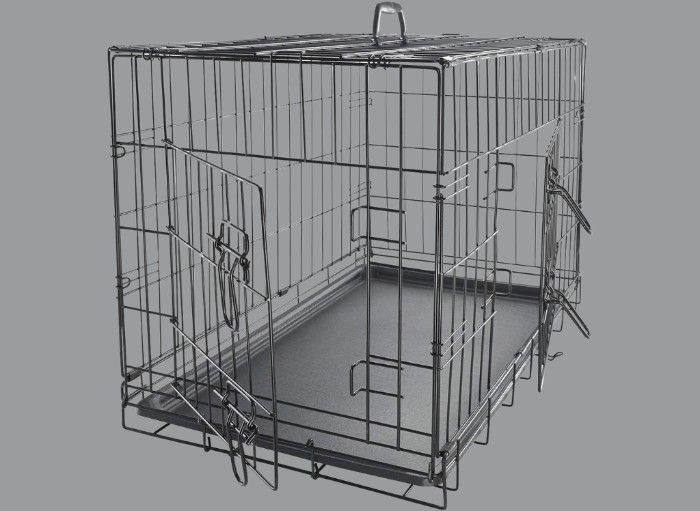 This 36x23x25 inch crate offers useful portability and storage features: the metal construction makes it durable and lightweight while folding flat makes it easy to store when not in use. The removable plastic base tray also makes cleaning simple - a necessity if you want to keep both your home and pup hygienic.