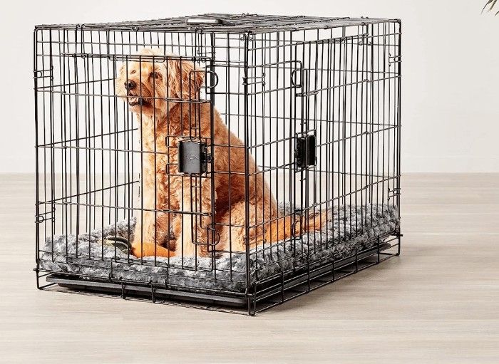 Its separator panel also allows capacity to increase as your puppy grows into full size, so you won't place too much strain on their space when they're young. To top it off, this convenient crate boasts removable plastic pans for a much easier clean-up routine!