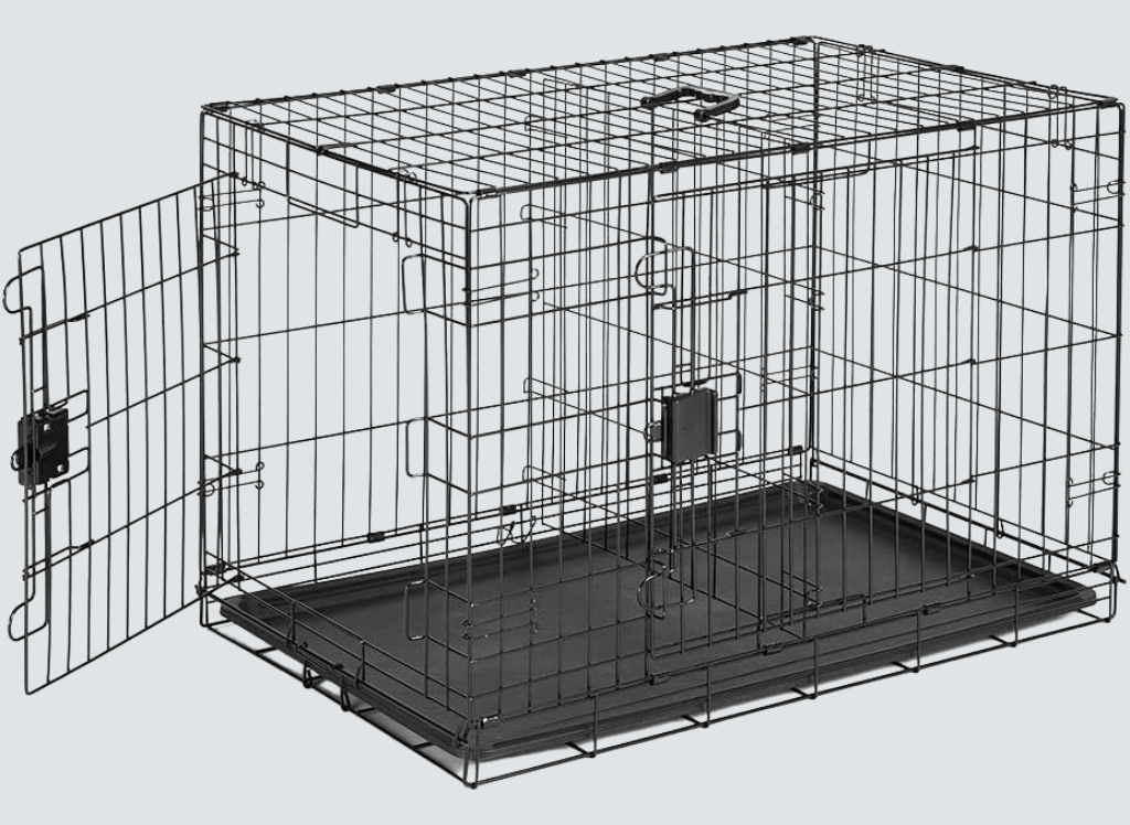 This 36x23x25 inch crate offers useful portability and storage features: the metal construction makes it durable and lightweight while folding flat makes it easy to store when not in use. The removable plastic base tray also makes cleaning simple - a necessity if you want to keep both your home and pup hygienic.