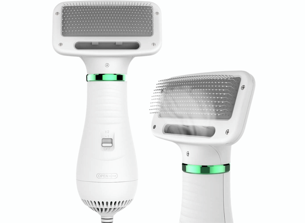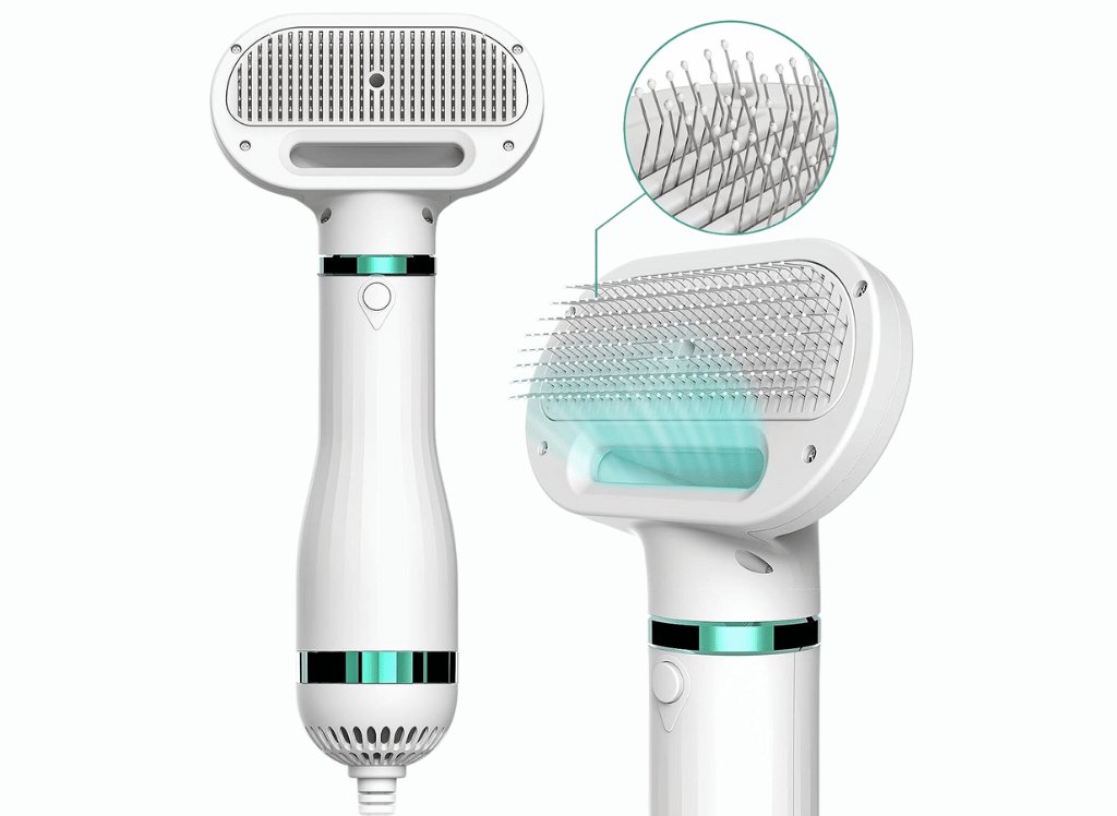 - Efficient 2-in-1 Design: This pet grooming dryer combines a hair dryer and a slicker brush, allowing for easy and efficient grooming after bath time.