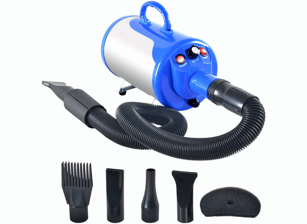 - Powerful Performance: With a 2400W adjustable motor and an airflow variable of 65MPH-135MPH, the SHELANDY pet dryer ensures speedy drying for pets of all sizes.