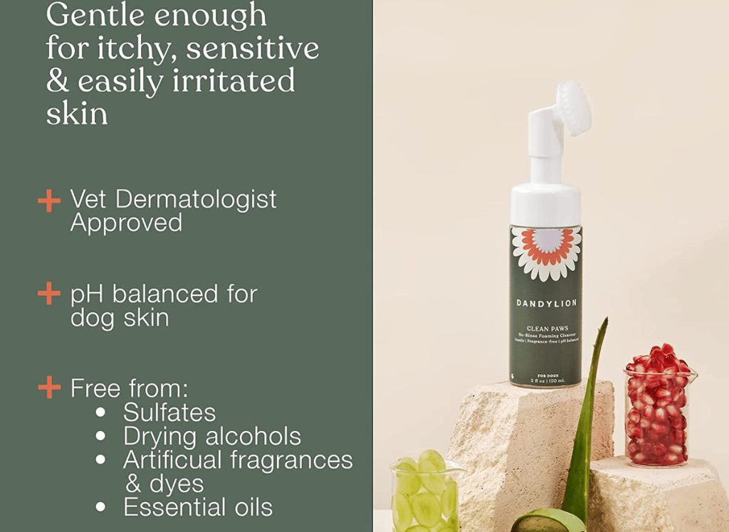 Barky Pup 3-in-1 waterless pet foot cleaning foam is the perfect solution for maintaining healthy paws. This product is specially formulated to clean, moisturize, and deodorize paws, providing relief from environmental allergens such as dandelion.