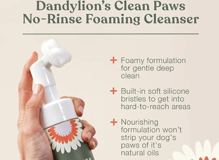 Dog owners everywhere know how dirty and muddy their furry friends can get when they go for walks or play outside. Luckily, Dandylion's Clean Paws No-Rinse Foaming Cleanser makes cleaning their paws a breeze. Using a gentle foaming formulation, this product easily gets into hard-to-reach areas with its soft silicone bristles, providing a thorough yet gentle deep clean for your dog's paws. What's more, with its clean plant-based ingredients like aloe juice, pomegranate juice, broccoli seed oil, and grape seed oil, it provides soothing and nourishing benefits to your dog's irritated, itchy, or dry paws. Give your furry friend the TLC they deserve with Dandylion's Clean Paws No-Rinse Foaming Cleanser.