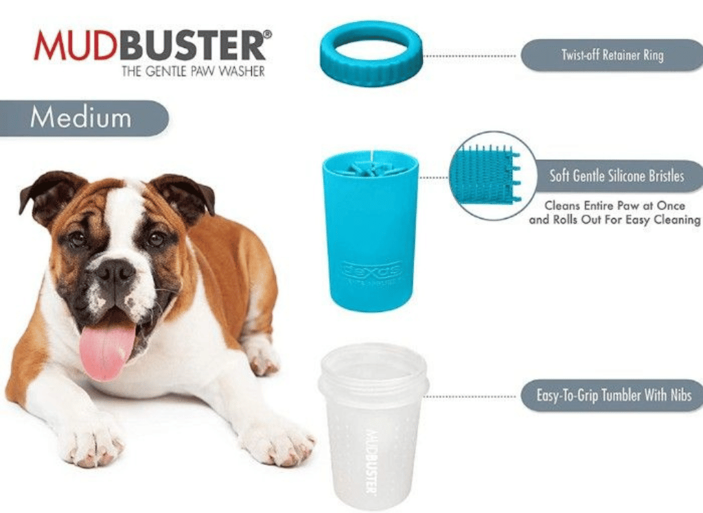 For those with medium-sized pooches, the MudBuster is a game changer for muddy paw prints. Measuring at 6 inches tall and 4 inches wide, the MudBuster is tailored to fit paws between 2 ½” to 3 ½” wide. It's the perfect size for your furry friend's trotters! To get started, simply add a little water, insert their paw, give it a good twist, dab it dry, and repeat the process for the other three. No need to worry about muddy trails or paw prints on your carpets anymore! The MudBuster is not only practical but also effective in ensuring those muddy paws are clean and fresh.